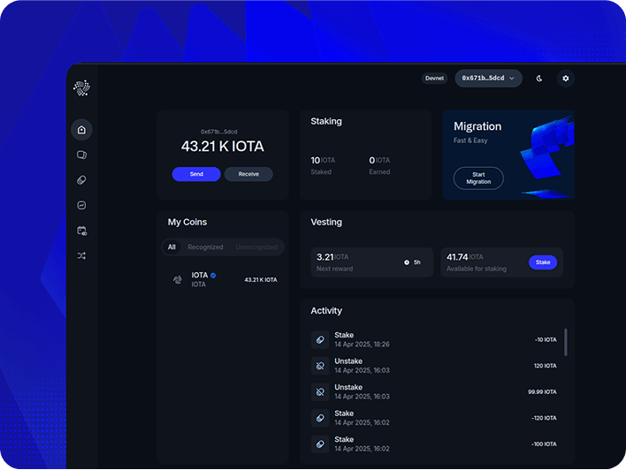 Stake your IOTA tokens to earn rewards while helping secure the network.